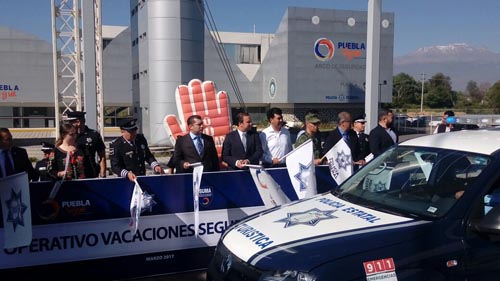 Durante el banderazo de salida, el titular de la SSP, Jesús Morales Rodríguez, en representación del gobernador Tony Gali, destacó las virtudes de Puebla como un destino turístico, así como la importancia de la seguridad en esta Semana Santa. Policía Federal, Policía Estatal Preventiva, Policía Turística, Bomberos Puebla, Vialidad de los tres órdenes de gobierno, Grupos Especiales, Policía Auxiliar, Sistema de Urgencias Médicas Avanzadas (SUMA) y el Instituto Nacional de Migración (INM), en coordinación realizarán patrullajes aéreos y terrestres, vigilancia preventiva en centros religiosos, plazas comerciales y puntos turísticos concurridos; con el objetivo de prevenir y dar seguridad a los asistentes. Elementos del Heroico Cuerpo de Bomberos coadyuvarán en todo momento con Protección Civil, con quienes implementarán dispositivos de prevención en balnearios y ferias, supervisando instalaciones de gas en establecimientos comerciales. Asimismo, personal de Vialidad Estatal vigilará y auxiliará a automovilistas, en zonas estratégicas y carreteras con mayor afluencia vehicular al interior del estado.