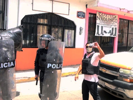 Sergio Oxmar Márquez Rodríguez, jefe de información del canal Sintonizados, relató que en primer lugar realizó grabaciones en compañía de compañeros del medio, cuando los uniformados decomisaron ropa y zapatos en un negocio sobre la calle 16 de septiembre sur, más tarde dijo que se traslado hacia el principal acceso a Zacapoaxtla en la zona sur, en donde grabó a las camionetas y las patrullas que se retiraban de esta ciudad. Afirmó que la última patrulla del convoy policiaco se detuvo a la altura del centro turístico de Ejecayan sobre la carretera Acuaco - Zacapoaxtla y le cedió el paso a la unidad en la que se trasladaba en compañía de otra persona y un kilómetro más adelante las patrullas que circulaban más adelante les cerraron el paso y los obligaron a salir de la carretera.