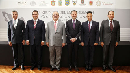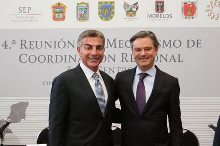 Acompañado de sus homólogos del Estado de México, Eruviel Ávila; Hidalgo, Omar Fayad y Tlaxcala, Marco Mena; el Ejecutivo reiteró su compromiso para seguir trabajando de manera coordinada con los tres órdenes de gobierno, con el objetivo de impulsar la educación en el estado. Destacó que en Puebla se realizan acciones para mejorar la calidad de la enseñanza con el equipamiento tecnológico de los preescolares, la entrega gratuita de uniformes y la incorporación de la materia de civismo. En el marco de este encuentro regional se firmó un acuerdo entre la Secretaría de Educación Pública y los gobernadores del Estado de México, Puebla, Morelos, Hidalgo y Tlaxcala, para avanzar en los procesos de implementación de la Reforma Educativa, en el que destacan los siguientes puntos: 1.- Impulsar la implementación del nuevo Modelo Educativo y las estrategias que se derivan como los programas nacional de inglés, de formación continua de docentes, las políticas para la mejora de la equidad y la inclusión educativa, de fortalecimiento y transformación de las escuelas Normales y de arte y cultura.