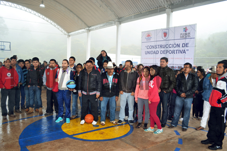 Luego del mensaje que dio el alcalde a los asistentes al evento, se procedió en primer término al corte del listón de la cancha de futbol, se dio la primera patada, más tarde se inauguró la cancha de basquetbol con la primera canasta y al final, se llevó a cabo la develación de la placa. Óscar Paula Cruz informó que entre canchas comunitarias, canchas en instituciones educativas, techados y la Unidad Deportiva, el ayuntamiento destinó más de 9 millones de pesos durante el ejercicio fiscal 2014 a la construcción de espacios deportivos en todo el municipio.