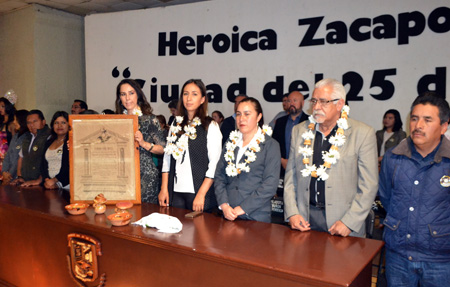 A las 10:00 horas en el Centro de Convenciones “Juan Francisco Lucas “, la secundaria “25 de abril” y el bachillerato “José Ignacio Morales Cruz”, presentaron el programa principal a esta celebración, la cual contó con música en vivo y la representación de una boda indígena propia de esta tierra de la sierra Nororiental del estado. Dentro del programa alumnos de la secundaria entregaron la réplica del nombramiento que se entregó a Zacapoaxtla en 1864, con lo que continuaron las actividades de feria de este municipio que culminarán el próximo 5 de mayo con un desfile por las principales calles de la ciudad.