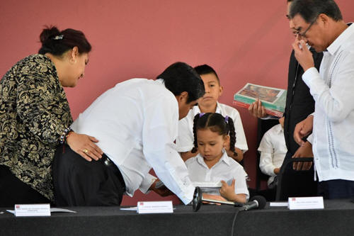 A la par de anunciar el proyecto de rehabilitación, el titular del Ejecutivo realizó la entrega de libros de texto gratuito a los alumnos de primaria. En el acto estuvo presente el titular de la Secretaría de Educación, Melitón Lozano Pérez, quien presentó la Cartilla Ética con la que los estudiantes fortalecerán sus valores morales y éticos. Asimismo, asistieron los titulares de las secretarías de Cultura e Infraestructura, Julio Glocknner Rossainz y Heliodoro Luna Vite, y la presidenta municipal de Tepexco, Aniceta Peña Aguilar.