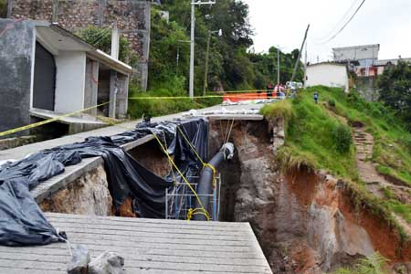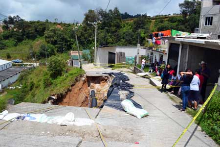 Los vecinos de esta zona, se reunieron este 26 de septiembre y señalaron que este hundimiento se generó desde el pasado ocho de septiembre y a pesar del riesgo, las autoridades municipales mantuvieron abierto el paso para automóviles y motocicletas, lo que provocó que al hundimiento creciera y ahora ya se encuentra a menos de un metro de las casas. Magdalena Aguilar Sánchez relató que durante la madrugada del ocho de septiembre de 2017, el tubo se reventó y se vieron obligados a evacuar sus hogares y refugiarse con amigos y familiares, sin embargo, se vieron obligados a pagar renta porque no pueden regresar a sus domicilios, ante el riesgo de la presencia de un sismo o de lluvias torrenciales.