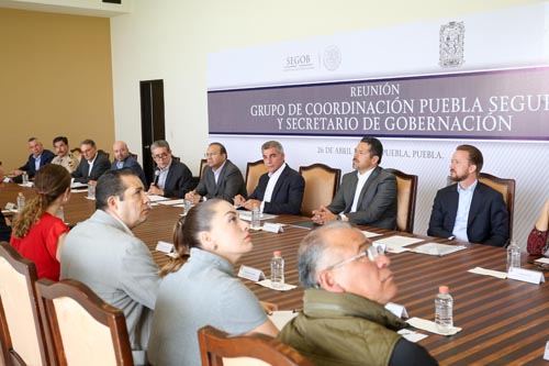 Puebla.- El Secretario federal de Gobernación, Alfonso Navarrete Prida y el gobernador Tony Gali, encabezaron la reunión con el Grupo de Coordinación Puebla Segura para analizar las estrategias de combate a la delincuencia en el estado.