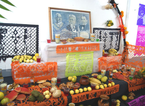 La directora Elsa Beatriz Mora Cárcamo comentó que en el internado todas las actividades van encaminadas a reforzar las costumbres y tradiciones de nuestro país, por lo que se les ofreció un desayuno con tamales y atole de chocolate, además de pequeñas hojaldras elaboradas en el taller de panadería de esta escuela. Además del desayuno, durante la mañana, se llevó a cada grupo a visitar la ofrenda general que fue elaborada en el taller de peluquería en la entrada a la escuela, la cual en este año se ofreció a la memoria de los tres Juanes de la sierra, Juan Francisco Lucas, Juan Crisóstomo Bonilla y Juan Nepomuceno Méndez y en donde se les dio una explicación a los niños acerca del significado de los elementos de la ofrenda.