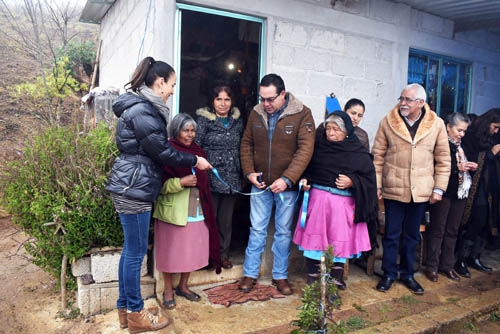 El alcalde comentó que a Enero del 2018, se llevan construidas 654 viviendas, con lo que superaron la meta que se impusieron en el 2014, cuando se estimó la construcción de 500 viviendas, pero dijo que gracias al manejo adecuado de los recursos, se logró beneficiar a un mayor número de familias, las cuales fueron seleccionadas por las condiciones extremas de pobreza en las que vivían. Aseguró que a través de los recorridos que realizó la Presidenta del DIF Margarita Lobato de manera conjunta con jueces de paz y ediles auxiliares, se encontraron a las familias viviendo con piso de tierra, techos de plástico y casas de madera, las cuales representaban el principal factor para que los menores de edad y adultos mayores adquirieran enfermedades.