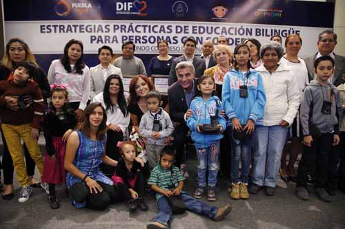 Al encabezar la inauguración del segundo Congreso Internacional de Estrategias Prácticas de Educación Bilingüe para Personas con Sordera, el mandatario destacó que este avance tecnológico cambia la vida de las personas, por lo que reiteró que seguirá trabajando para garantizar el pleno goce de los derechos, la inclusión y participación de la población con alguna discapacidad. Destacó que en este espacio se intercambiarán experiencias que darán pauta para establecer nuevos modelos educativos incluyentes; además, mencionó que se conocerán materiales inéditos para la enseñanza de matemáticas, el uso de la tecnología y las metodologías pedagógicas utilizadas en la Escuela de Alta Tecnología Educativa para Sordos. Informó que, de acuerdo con datos del Instituto Nacional de Estadística y Geografía (INEGI), el 5.2 por ciento de la población en el estado tiene algún tipo de discapacidad, de la cual el 37.6 por ciento padece sordera; en este sentido, enfatizó que es fundamental promover la identidad lingüística, formar profesionales en este ámbito e implementar materiales alternativos para el aprendizaje.