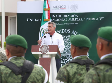 “No importando el origen partidario que tengan los gobiernos estamos resueltos además, como lo hemos venido acreditando, a hacer equipo, a trabajar de manera unida en beneficio de la ciudadanía de Puebla”, subrayó. Al inaugurar la unidad habitacional Militar "Puebla V", el Ejecutivo federal indicó que seguirá destinando recursos para la construcción de viviendas, en este sentido, informó que que se han edificado en todo el país 30 unidades impactando positivamente a más de 10 mil familias. El gobernador Tony Gali reiteró la absoluta disposición de su administración para sumar esfuerzos con el gobierno federal, no sólo en el combate contra la delincuencia, sino también con estrategias que impulsen la cohesión social y los valores. Asimismo hizo un reconocimiento a todos los integrantes de las Fuerzas Armadas por su labor para mantener la tranquilidad de los mexicanos.