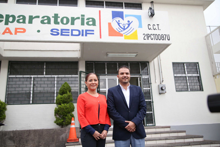 En compañía del director general del SEDIF, Jorge David Rosas Armijo, López de Gali saludó a la comunidad académica y recorrió los salones, laboratorio, biblioteca y comedor de esta escuela de bachillerato donde asisten jóvenes de zonas marginadas, así como algunos beneficiarios de programas sociales.