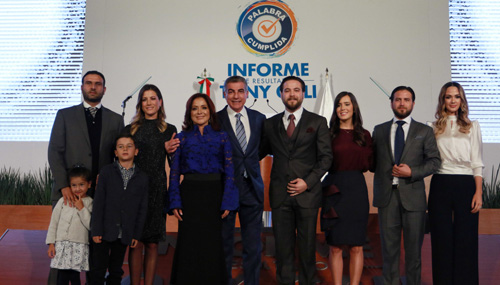El titular del Ejecutivo citó que en salud dio cumplimiento al compromiso número 1, brindando atención médica las 24 horas del día en los 217 municipios, y se garantizó el abasto de medicinas del cuadro básico. Mientras que con la aplicación de cerca de 360 mil exámenes médicos en preescolares públicos se consolidó el compromiso número 2. También el estado cuenta con una Unidad de Imagen y Resonancia Magnética para el Hospital del Niño Poblano, un Acelerador Lineal para la Unidad de Oncología y un hospital de campaña único en México, acciones por las que la Federación otorgó la distinción al “Trabajo Excepcional en Salud”. El Ejecutivo condenó la violencia de género y aseguró que los feminicidios, que tanto lastiman a la sociedad, se han investigado en su totalidad durante esta administración. Añadió que para erradicar esta problemática se implementó la estrategia integral De una Vez por Todas, en tanto la Coordinación Especializada para Prevenir la Violencia contra las Mujeres impartió asesoría jurídica y psicológica a más de cinco mil personas y, como parte del empoderamiento de las mujeres, se entregaron más de 15 mil apoyos productivos a emprendedoras de 143 municipios. Tony Gali reconoció la incansable labor de Dinorah López de Gali al frente del Patronato del Sistema Estatal DIF, ya que alcanzó resultados inéditos como las Casas Jóvenes en Progreso con 13 mil beneficiarios entre Amozoc, Tlatlauquitepec, Zacatlán San Andrés Cholula, Vicente Guerrero y Cuetzalan. Asimismo se publicó la Ley de Protección de los Derechos de Niñas, Niños y Adolescentes, y Puebla es el primer estado en instalar el Consejo de Participación Permanente para estos sectores.