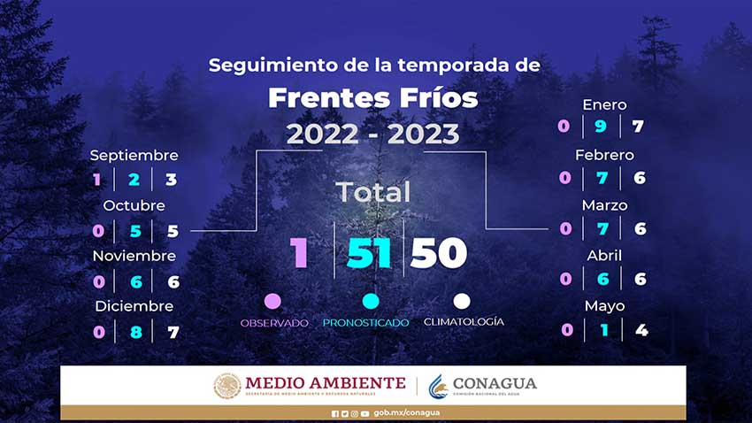 Zacapoaxtla.- El Servicio Meteorológico Nacional (SMN), pronostica que durante la temporada 2022 – 2023, se espera que más de 50 frentes fríos, afecten al país, el primero se registró los días 27 y 28 de septiembre.