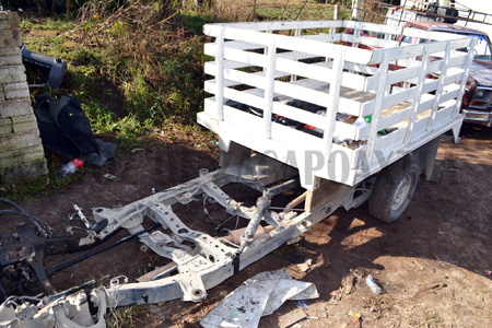 En el terreno se encontraron las piezas de la camioneta robada, además de autopartes de otras unidades, así como otra camioneta marca Nissan, color blanco, tipo pick up, modelo 1998, sin placas de circulación.