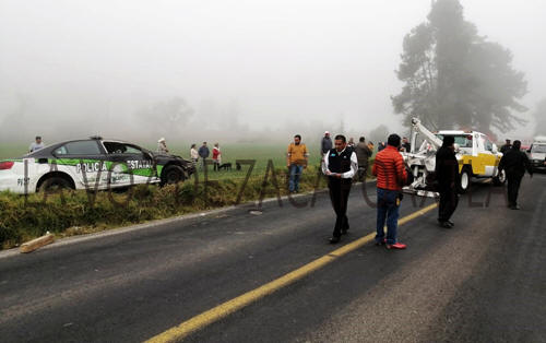 Se informó que el vehículo oficial número 217, circulaba con dirección a Zacapoaxtla, para atender un accidente que reportaron sobre esta misma carretera, sin embargo al llegar al paraje San Isidro, golpeó a una camioneta marca Nissan que ingresaba hacía Huichautla, lo que provocó que perdiera el control. Tras el impacto, el conductor de la patrulla perdió el control, salió de la cinta asfáltica y el vehículo terminó volcado sobre un terreno de siembra, hasta donde arribaron paramédicos del Sistema de Urgencias Médicas Avanzadas (SUMA). La patrulla y los oficiales pertenecen a la delegación de vialidad estatal con sede en Zacapoaxtla y fueron elementos de la delegación Tlatlauquitepec los que tomaron conocimiento y con el respaldo de grúas, llevaron a cabo el rescate de la unidad oficial.