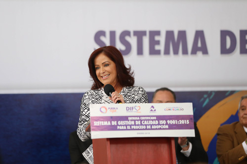 Reconoció el liderazgo de Dinorah López de Gali, por crear un marco jurídico sólido para las familias y agradeció el trabajo de los servidores públicos del DIF Estatal, para obtener este logro. "Se traduce en el establecimiento de medidas certificadas para que a través de la adopción, nuestras niñas, niños y adolescentes encuentren el hogar idóneo, integrado por personas amorosas, solidarias y dispuestas a proveerles los medios suficientes para su educación y desarrollo", manifestó. Por su parte la titular de NORMEX, Laura Campos, indicó que gracias a que el proceso de adopciones ya se encuentra bajo la patente 2015, los ciudadanos pueden tener certeza de que en Puebla se trabaja por un mejor estado.