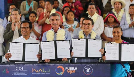 En tanto, el director general del Instituto Nacional de Lenguas Indígenas, Juan Gregorio Regino, manifestó que existe una ley que protege y reconoce las lenguas indígenas al nivel del Español y otros idiomas, que no todos conocen; por lo que reconoció el interés del gobernador Tony Gali en impulsar esta iniciativa. Como parte de su compromiso de mantener un gobierno próximo, el gobernador Tony Gali puso a disposición de los pobladores los diferentes servicios públicos que ofrece el estado. El Ejecutivo invitó a la ciudadanía a aprovechar la Caravana del Progreso, en la que estuvieron presentes las secretarías de Salud, Educación Pública, Desarrollo Rural Sustentabilidad y Ordenamiento Territorial, General de Gobierno, Desarrollo Social, Seguridad Pública, Infraestructura, Movilidad y Transportes, así como de Competitividad, Trabajo y Desarrollo Económico y la Dirección de Protección Civil, para atender las necesidades de la gente. Al participar en el Foro Agropecuario de la región, el mandatario poblano firmó como testigo el convenio de Agricultura por Contrato entre productores de café y empresas cafetaleras, por 10.7 millones de pesos, para promover la distribución de sus productos y detonar la economía de las familias.