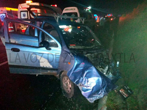 Oficiales de vialidad estatal región Tlatlauquitepec, tomaron conocimiento del accidente entre una camioneta de la marca Nissan, tipo NP300, tipo estacas, color rojo conducida por el señor Sergio Nicolás "N." de ocupación comerciante y con domicilio en el barrio de Chignaulingo de la ciudad de Teziutlán. El segundo vehículo involucrado, era de la marca Chevrolet, línea Matiz, color azul, con placas del estado de México, de este auto resultaron dos personas lesionadas, que responden con los nombres de Isaías Huerta y su esposa Octavia Hidalgo ambos con domicilio en el estado de México, siendo estos atendidos y trasladados al hospital General de Tlatlauquitepec. De acuerdo a lo relatado por las autoridades de vialidad estatal, la Nissan estacas circulaba con sentido a la ciudad de Teziutlán, sin embargo el estado etílico en el que conducía el teziuteco, provocó que invadiera el carril contrario de circulación hasta impactar al Matiz. El responsable quedó a disposición de vialidad estatal, mientras que los ocupantes del vehículo afectado quedaron internados bajo supervisión médica debido a que su estado de salud es delicado.