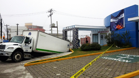 Se informó que el camión de la marca Freightliner, de la empresa Lavartex, dedicada a lavar la ropa y sábanas del centro de salud, se estacionó para realizar labores de carga y descarga, pero el piso comenzó a hundirse y la parte trasera cayó en un socavón, lo que de inmediato alertó a los responsables del Cessa.