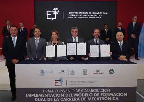 Durante el encuentro, se llevó a cabo la firma de convenio de colaboración para la implementación del Modelo Dual de la carrera de Mecatrónica entre la Universidad Tecnológica de Puebla, Audi México y la Secretaría de Educación Pública federal. Estuvieron presentes el embajador de Alemania en México, Viktor Elbling; el Vicepresidente de Recursos Humanos de Audi México, Andreas Zelzer; así como autoridades estatales y municipales.