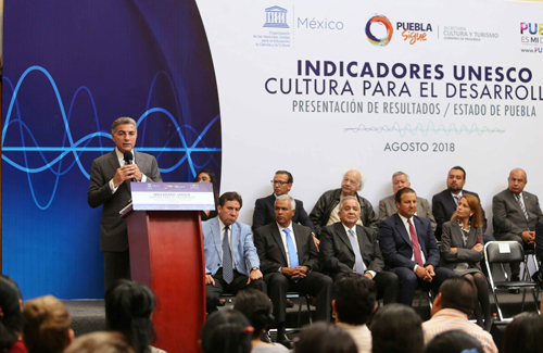 En su mensaje, el mandatario indicó que con este instrumento, elaborado de manera interinstitucional y participativa, se medirán las políticas públicas en este rubro a través de siete dimensiones: Economía, Educación, Gobernanza, Participación Social, Igual de Género, Comunicación y Patrimonio. Tony Gali enfatizó que Puebla es uno de los cinco estados que cuentan con los Indicadores UNESCO de Cultura para el Desarrollo (IUCD) que permitirán realizar un análisis de datos para identificar retos y oportunidades en el futuro. Además, dijo que servirán de insumo para contribuir al cumplimiento de la Convención de la UNESCO sobre Protección y Promoción de la Diversidad de las Expresiones Culturales. Detalló que los resultados determinaron que la entidad tiene una importante red de bibliotecas y casas de cultura, así como un patrimonio material e inmaterial diverso, una plataforma de industrias creativas en la capital que contribuyen al crecimiento económico y al empleo, así como centros de formación de profesionales artísticos que generan garantía y crecimiento. En su intervención, Nuria Sanz resaltó que Puebla ha participado más en las convenciones internacionales y programas de la UNESCO y aseguró que este estudio es una herramienta planificadora que tiene incidencia en la estructuración de las políticas públicas del estado.