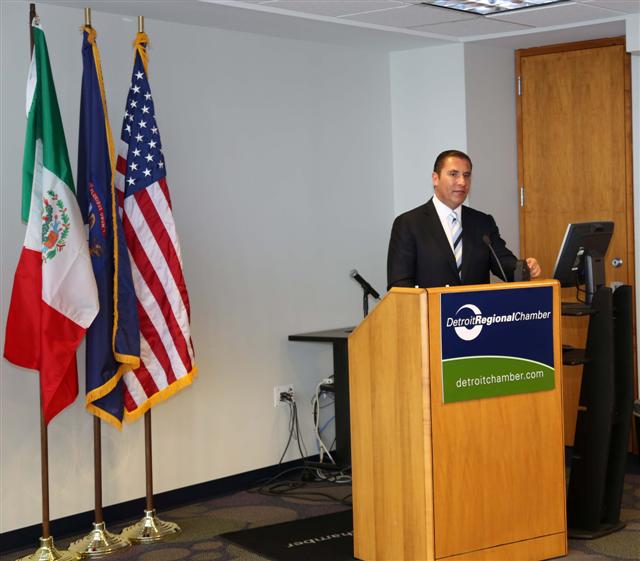 El Gobernador Rafael Moreno Valle manifestó lo anterior, durante la reunión que sostuvo con integrantes de la Cámara de Comercio de Detroit que presidente Benjamín Erulkar, como parte de la gira de trabajo que realiza por esta entidad de la unión americana con el propósito de atraer un mayor flujo de inversiones, particularmente del sector automotriz a Puebla. En compañía del Cónsul General de México en Detroit, Vicente Sánchez, Moreno Valle subrayó que Puebla representa una excelente área de oportunidad para la industria automotriz, al tiempo que destacó que en su territorio se encuentran radicadas un importante número de proveedoras de ese sector.