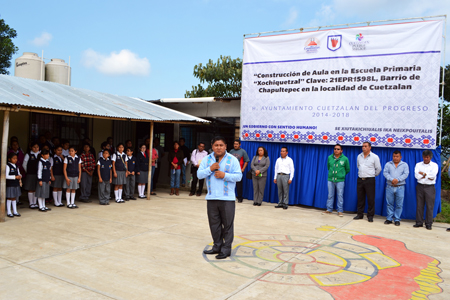 Por su parte el director del plantel, Pedro Diego Salazar que el aula que se construirá, se destinará a los alumnos  del tercer grado, quienes actualmente toman clases en los salones improvisados que fueron construidos por los padres de familia, con la meta de que para el 2015, cada grado cuente con un salón en buenas condiciones.