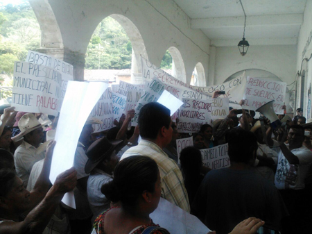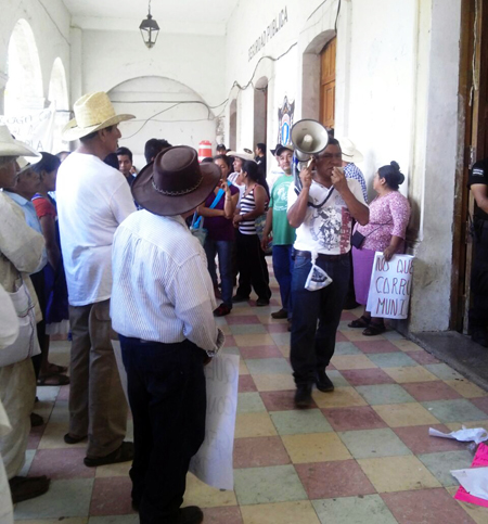 Desde las 18:00 horas arribaron los inconformes y con pancartas mostraron su descontento por diversas situaciones, entre ellas la falta de obra pública, el maltrato de parte de personal del ayuntamiento y por que dejó de entregar participaciones a las dos juntas auxiliares y la gente de Nanacatlán expresó su rechazo a la destitución de su alcalde auxiliar Oscar García García.