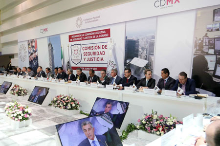 Durante la reunión, se presentaron los resultados de las 13 comisiones que estuvieron operando, en los que destaca la modificación al Artículo 19 Constitucional para que se decrete y se aplique la prisión preventiva oficiosa a toda la cadena de robo de hidrocarburos. También la seguridad turística como un nuevo modelo de atención que brindará mayor protección a los visitantes, y el avance sustancial en materia de aduanas, robo de vehículos, de prevención del delito, del Sistema Penitenciario y de estadísticas e indicadores de todos los estados. Asimismo, se signó un convenio de colaboración entre la Conago y la Junta de Gobierno del Mecanismo Federal para Protección de Personas Defensoras de Derechos Humanos y Periodistas. Estuvieron presentes Luis Raúl González Pérez, Presidente de la Comisión Nacional de los Derechos Humanos; así como los Ejecutivos y representantes de las entidades federativas.