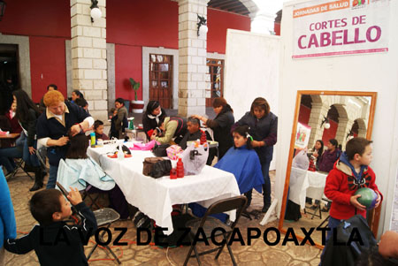 Dentro de los servicios que se ofrecieron este viernes, alumnas del Centro de Capacitación y Desarrollo (Cecade), ofrecieron cortes de cabello gratuitos y reparación de prendas a la población en general, además de que se llevó a cabo una demostración del taller de gastronomía. Durante la jornada, se atendieron a niños para corregir problemas de pie plano, pie cavo y problemas de postura.