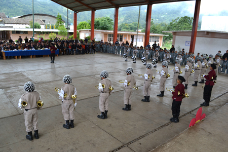 El personal docente de esta escuela, ofreció un programa social y cívico a los visitantes y en respuesta, Sánchez de la Vega Guzmán dijo que apoyará a la institución con la entrega de todo el material para pintar el internado, que consta de 45 cubetas de pintura de esmalte, 14 cubetas de pintura vinílica, 150 litros de thiner, 20 rodillos, 50 brochas, además de estopa y extensiones para rodillo.
