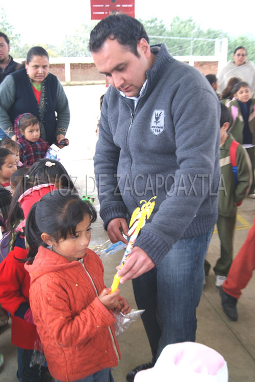 En la Primaria Raque Flores González de la Colonia Insurgentes, el edil expresó que cada fecha representa una oportunidad para el Ayuntamiento de estar cerca de la población y expresó que este 2012 para Xalacapan se tiene proyectada la aplicación de más de 10 millones de pesos, dos millones para un espacio deportivo, además de obras de drenaje, pavimentaciones y diversas necesidades de los ciudadanos. JUGUETES Y NUEVO DESAYUNADOR EN CAIC REVOLUCIÓN