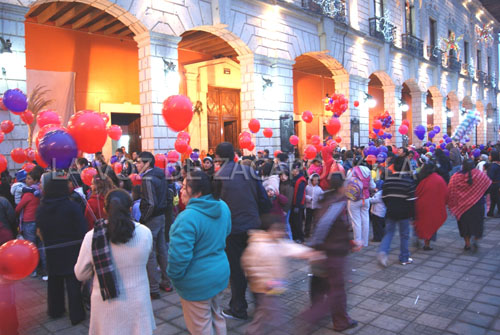 A pesar del frío que alcanzó los seis grados centígrados, las familias se reunieron y en el zócalo, cientos de globos de helio con las cartas de los niños se soltaron y se repartieron aguinaldos a los menores de tres años. El zócalo se llenó de globos de color morado y rojo y la alegría de los pequeños, quienes se fueron a sus casas con la ilusión de recibir sus regalos para la mañana de este viernes 6 de Enero, día en que también se partió una rosca gigante frente al Palacio Municipal y se presentó el show de los enanitos toreros en el recinto ferial.