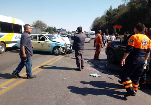 Los otros dos lesionados fueron los dos conductores, José Manuel Toribio Mariano de la camioneta y Julio Cesar Lorenzo Chávez, conductor del taxi de 22 años de edad, de quienes se informó que solamente el chofer del taxi fue trasladado al hospital Guadalupano. Las unidades involucradas fueron la camioneta negra, marca Ford, tipo F-150, placas de circulación SK-84014 del estado de Puebla, y el taxi del sitio Teteles, de color azul con amarillo, placas de circulación 8255-SSK del estado de Puebla y se informó que el choque se originó cuando el conductor de la camioneta se incorporó a la vía federal sin tomar las precauciones necesarias, por lo que el taxi se le impactó en la parte trasera del costado izquierdo.