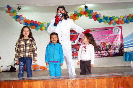 Con un show en donde se cantaron temas infantiles que se han hecho clásicos como “La Feria de Cepillín”, “Tomás”, “En un bosque de la china”, “Amor chiquito”, entre otros y con la presencia de botargas, los niños disfrutaron de un ameno espectáculo en donde se repartieron obsequios y globos, así como pintacaritas.