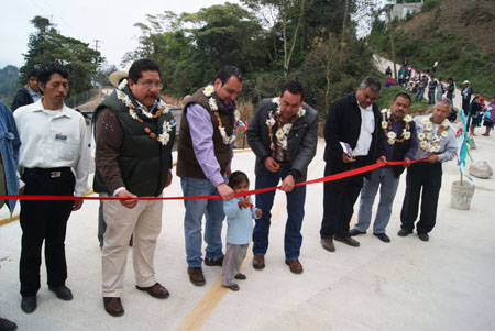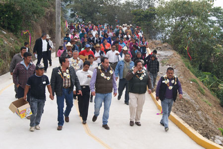 Más de 300 pobladores, entre los que se encontraban alumnos de las tres escuelas de la comunidad, recibieron a las autoridades en el camino principal, cortaron el listón y acompañados de la banda de guerra de la primaria Nicolás Bravo y un trío de son tradicional, recorrieron la obra, la cual beneficia a toda la población.