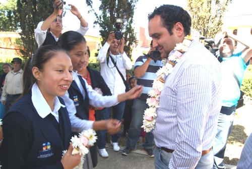 A las 14:30 horas, el alcalde en compañía del director de obras Guillermo Lobato Toral, el regidor de Industria y Comercio Pedro Prado Cid y el regidor de Educación, Noé Reyes Díaz, arribó a la escuela, en donde más de 600 personas, entre alumnos, padres de familia y docentes lo recibieron y externaron su agradecimiento por la obra.
