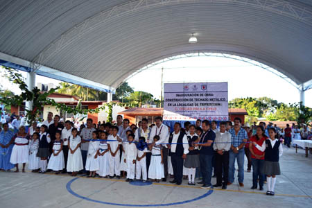 Más tarde en la Primaria “Miguel Hidalgp”, el Presidente también acudió a la inauguración del segundo techado de la plaza cívica del plantel, obra que beneficia a un total de 192 alumnos, además del personal docente y los padres de familia que acuden a las actividades deportivas, culturales y sociales. Óscar Paula Cruz aseguró que se invirtieron 1 millón 450 mil pesos en los techados de las dos instituciones y a la fecha se han aplicado recursos en 26 obras para este junta auxiliar que tiene una población aproximada de 6 mil habitantes, lo que dijo que es una muestra de que la política pública es de ayudar a los que más necesitan. Dijo que los pueblos más necesitados son los que mayor inversión han recibido, ya que lo prioritario apoyar a los pueblos que están en desarrollo y que requieren de servicios básicos como agua potable, drenaje y electrificación, temas que han sido atendidos por la administración 2014 – 2018.