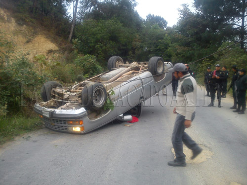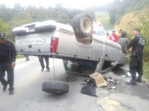 El subdelegado de seguridad vial, Armando Ortiz Juárez informó que la tarde del sábado siete de abril en el kilometro 3+100 del tramo Zacapoaxtla – Cuetzalan, en el paraje de San Carlos, el conductor de una camioneta pick up, placas SG12374 del estado de Puebla, modelo 1993, perdió el control y se volcó sobre la cinta asfáltica, pero se desconoce a quien pertenece la unidad, puesto que se llevaron la tarjeta de circulación.