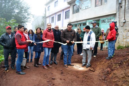 Acompañado por la Presidenta del DIF Margarita Lobato, así como Regidores y Directores del Ayuntamiento, el Presidente informó que se construyeron 856 metros lineales de tubería, 22 pozos de visita y 30 descargas domiciliarias, obra que tuvo una inversión de 778 mil 999 pesos de recursos de ramo 33.