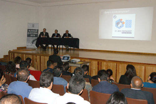 Armando López Aguirre, Fiscal Especializado para la Atención de Delitos Electorales en Puebla, señaló que el objetivo de la capacitación es que los participantes lleven a cabo las acciones pertinentes en materia electoral e identifiquen los posibles delitos que se puedan presentar en las próximas elecciones. Señaló que al presenciar alguna anomalía el próximo 1 de julio, la ciudadanía puede denunciar ante cualquier agencia del Ministerio Público o a través de la línea telefónica 01 800 3 37 23 37. En la capacitación que se realizó en al auditorio de la Secretaría de Finanzas, se dio a conocer a trabajadores de gobierno cuáles son sus limitantes y cómo deben conducirse con apego a la legalidad en las contiendas electorales. Con estas acciones en colaboración con otras instancias, la Fiscalía de Puebla a través de la FEPADEP, busca garantizar unas elecciones transparentes y en calma.