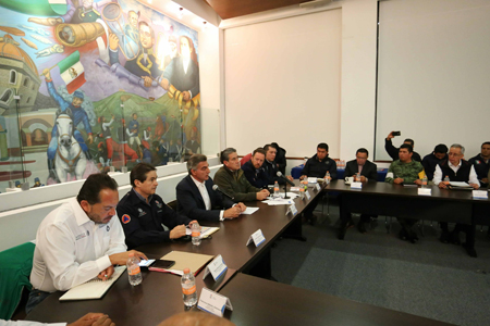 En tanto, el delegado de la Comisión Nacional del Agua (CONAGUA), Alberto Jiménez, dio a conocer que las presas del estado que se encuentran saturadas, están siendo desfogadas y que se mantiene el abastecimiento de agua potable en las comunidades que así lo requieren. En el encuentro participaron el alcalde de la capital, Luis Banck e integrantes del gabinete estatal, así como representantes de los tres niveles de gobierno.