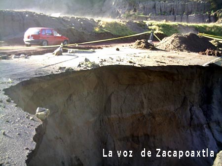 carretera Acuaco –Zacapoaxtla a la altura de Ejecayan como consecuencia