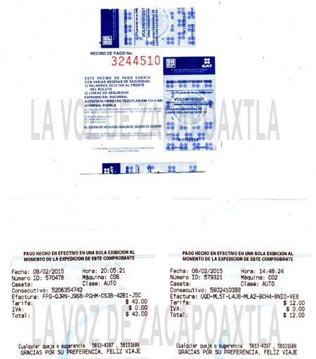 casetas de Zaragoza y Atempan, en la autopista Virreyes – Teziutlán,