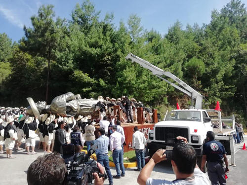 El Presidente Ebodio Santos Alejo días antes emitió un mensaje en redes sociales: “La reestructuración de nuestra heroica Zacapoaxtla, demanda un tributo a nuestra historia, por eso te invitamos este viernes 10 de julio, a que os sigas por las redes sociales a la inauguración de estas dos esculturas, quédate en casa”. Para este diez de julio, con la participación de la banda de guerra del Batallón Zacapoaxtla, mujeres ataviadas con trajes tradicionales, personal del Ayuntamiento y decenas de ciudadanos, se realizó la ceremonia en el centro de la ciudad y más tarde el recorrido para colocar las estatuas.