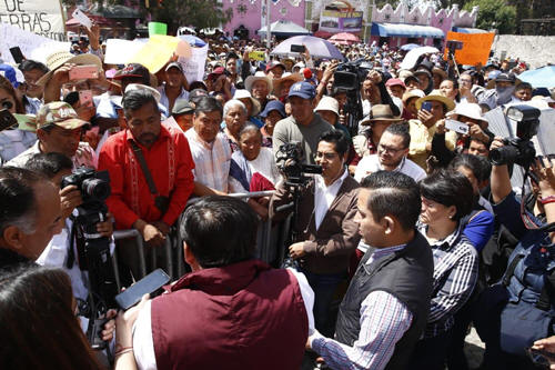 “Vamos hacer que la tierra se respete para quienes son sus legítimos ocupantes, nosotros encabezamos un gobierno que está comprometido con las mayorías, con los que menos tienen, que respetamos, dialogamos y estamos cercanos a la gente”, señaló ante los manifestantes. Por este motivo, instruyó al secretario de Gobernación, David Méndez Márquez establecer una mesa de diálogo para conocer la situación de los ejidatarios, y de comprobarse irregularidades iniciar un proceso de expropiación a su favor.