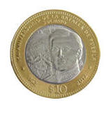 f) Composición: La moneda será bimetálica y estará constituida por dos aleaciones, una para su parte central y otra para su anillo perimétrico, que serán como sigue: