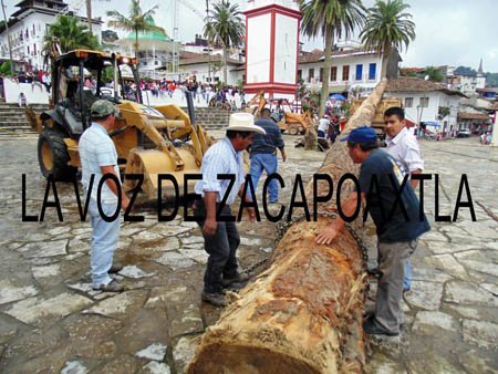 Desde las siete horas, con lazos y cadenas, personal del ayuntamiento y habitantes de las comunidades, con apoyo de las máquinas, ataron el tronco y lo colocaron encima del camión de volteo, fue entonces que inició el ritual con la bendición y más tarde los cinco integrantes de la danza de los voladores de San Andrés Ticuilan, ingresaron a la iglesia y bailaron frente a la imagen de San Francisco, patrono de Cuetzalan.