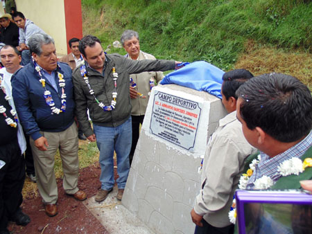 Luego del evento cívico, el Presidente Armando Sánchez develó la placa alusiva al evento con la leyenda: “Campo deportivo “Lic. José Armando Sánchez Jiménez, la junta auxiliar de Tatoxcac agradece al H. Ayuntamiento de Zacapoaxtla 2011 – 2014, presidido por el Lic. J. Armando Sánchez Jiménez por la inversión de este proyecto para el fomento del deporte, así como la entrega y decisión del C. Guillermo Lobato Toral, Atentamente Comité del deporte, junta auxiliar 2011 – 2014.
