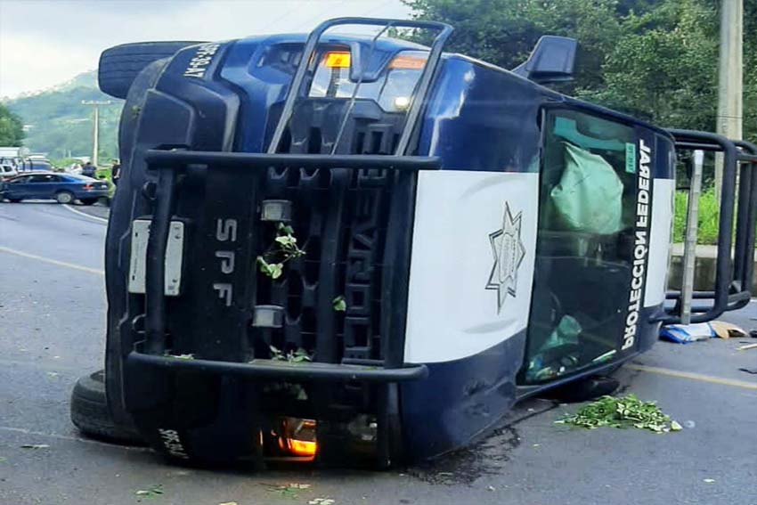 Apenas en esta semana, el conductor de la patrulla de Protección Federal número 039-A7, de manera irresponsable y a exceso de velocidad, intentó rebasar un camión que circulaba sobre el libramiento Oriente de la ciudad de Zacapoaxtla y al llegar a una curva, impactó de frente a un Volkswagen Vento.