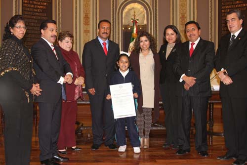 RECONOCIMIENTO Finalmente por haber obtenido el Primer Lugar en el Concurso Estatal de Dibujo Infantil y Juvenil 2010, “Las Personas no se venden ¡Ponte Vivo! Cuídate de la Trata”, la LVII Legislatura otorgó un reconocimiento a la niña Macarena Ramos Fierro, debido a que en su dibujo logró plasmar la realidad de una problemática social desde su percepción como es la Trata de Personas.