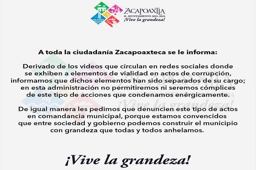 Zacapoaxtla.- El Ayuntamiento de Zacapoaxtla, separó